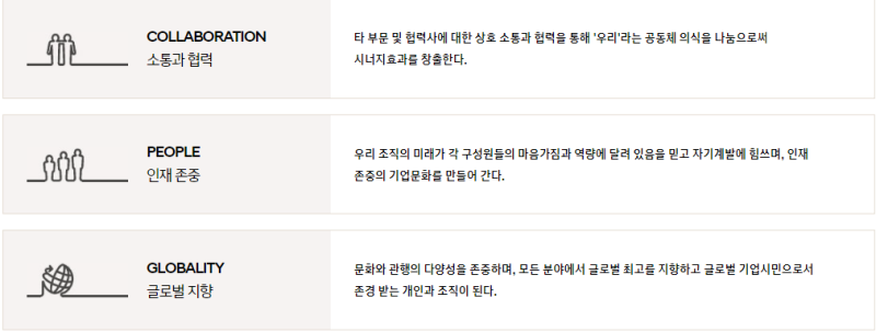 • 핵심가치: 혁신(Innovation), 안전(Safety), 고객 중심(Customer Focus), 동반 성장(Shared Growth)