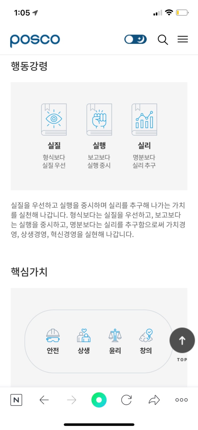✅ 핵심가치: 안전, 상생, 신뢰, 도전, 창의