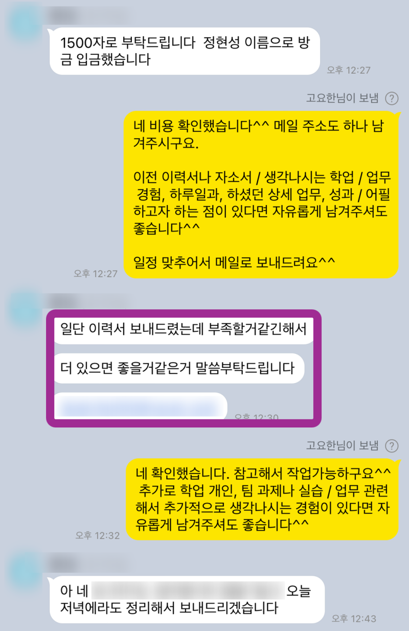 지원자분께서도 이 부분을 인지하고 계셨지만, ‘어떻게 하면 내 경험을 현대미포조선의 눈높이에 맞춰 잘 풀어낼 수 있을지’, ‘구체적인 성과는 어떻게 수치화해야 할지’ 등 여러 고민을 안고 계셨습니다. 제가 직접 첨삭/대필하면서 얻은 노하우를 바탕으로, 이 지원자분의 이야기를 하나하나 세밀하게 파고들기 시작했습니다. 매년 1,000명 이상 자소서 컨설팅을 하며 수백 명 합격 사례를 보유하고 있다는 자부심으로, 지원자분의 숨겨진 강점과 잠재력을 끌어내어 현대미포조선에 최적화된 스토리를 만드는 데 집중했죠. 정말 이건 거의 대필 수준으로 갈아엎었다고 봐야 해요! 고객님이 전에 쓰셨던 자소서를 들고 오셨는데, 글자 수도 안 맞고 문장도 그대로 첨삭하면서 거의 다시 짰다고 봐야 해요 제발 다음엔 하루 전에는 와주셔요..! 진짜 그래야 저도 여유 있게 도와드릴 수 있거든요