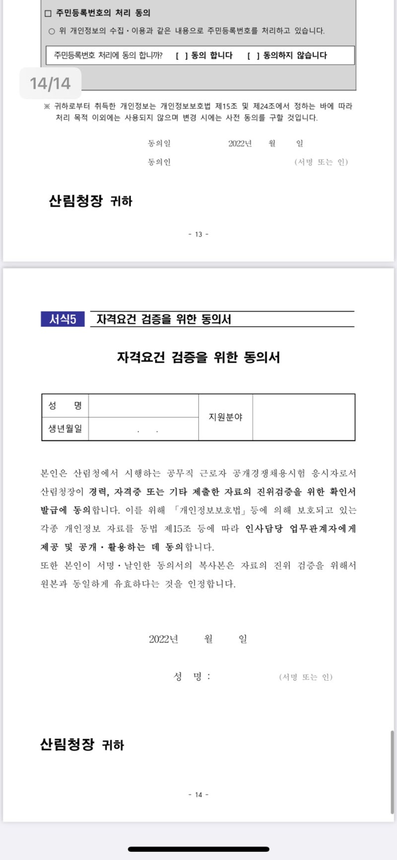 이번 산림청 행정실무원 지원자분은…