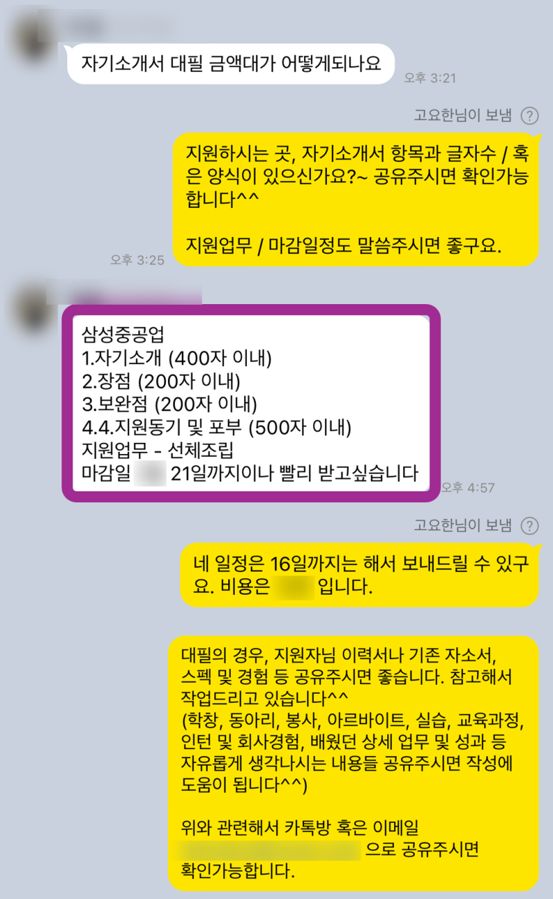 ✨ 모든 기업 자소서 첨삭, 작성 대행, 대필 가능합니다!
