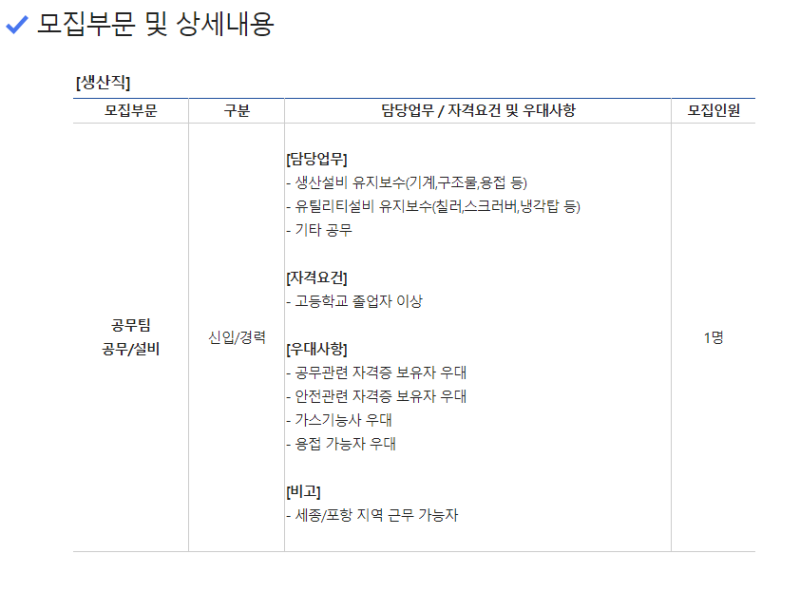 포스코실리콘솔루션 생산직(공무) 주요 업무
