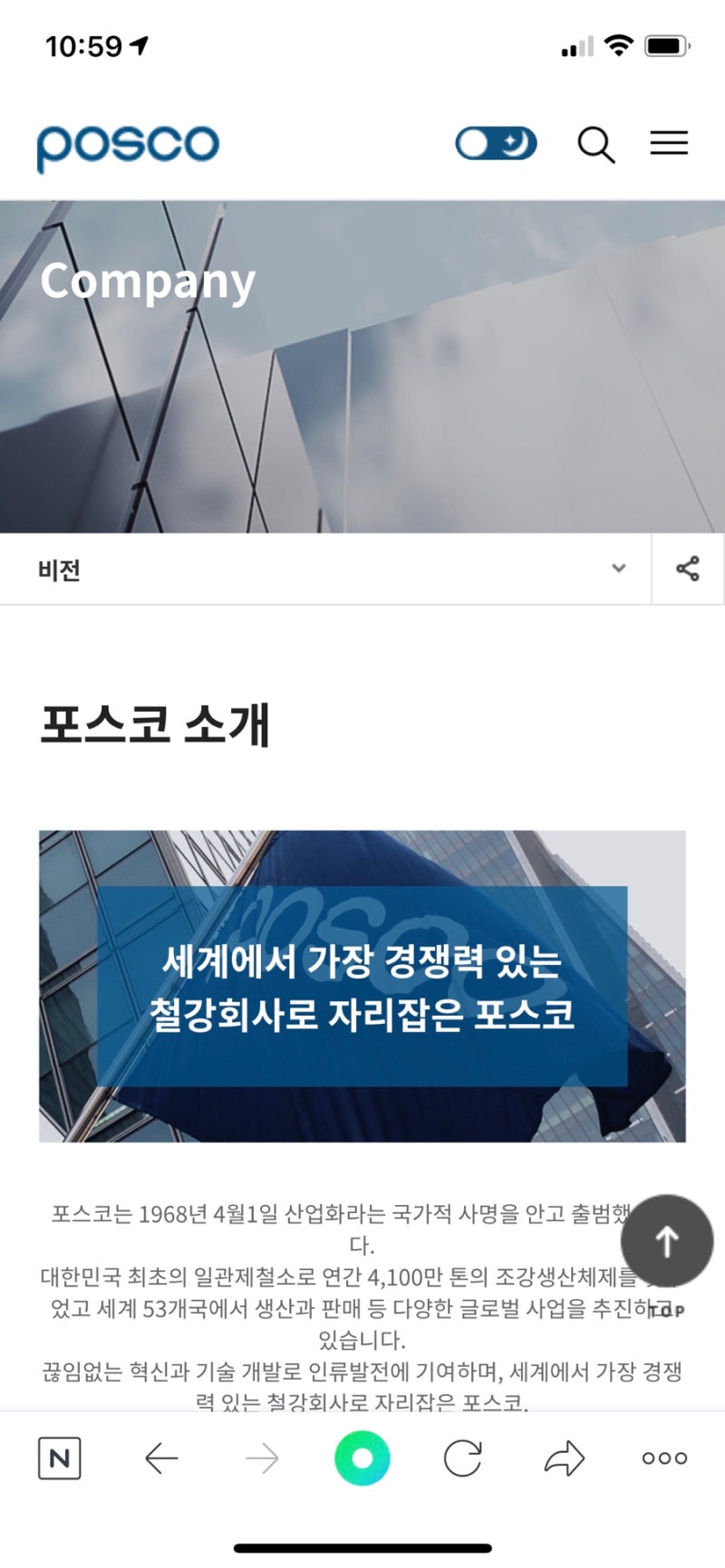 포스코는 대한민국을 대표하는 글로벌 철강 기업입니다. 단순히 철강을 만드는 것을 넘어, 소재, 에너지, 건설 등 다양한 분야로 사업을 확장하고 있습니다. 특히, 친환경 미래 소재 개발에 적극적으로 투자하며, 지속 가능한 성장을 추구하고 있다는 점이 인상적입니다. 포스코는 끊임없는 혁신과 기술 개발을 통해 글로벌 경쟁력을 강화하고 있으며, 사회적 책임을 다하는 기업 시민으로서의 역할도 중요하게 생각하고 있습니다.