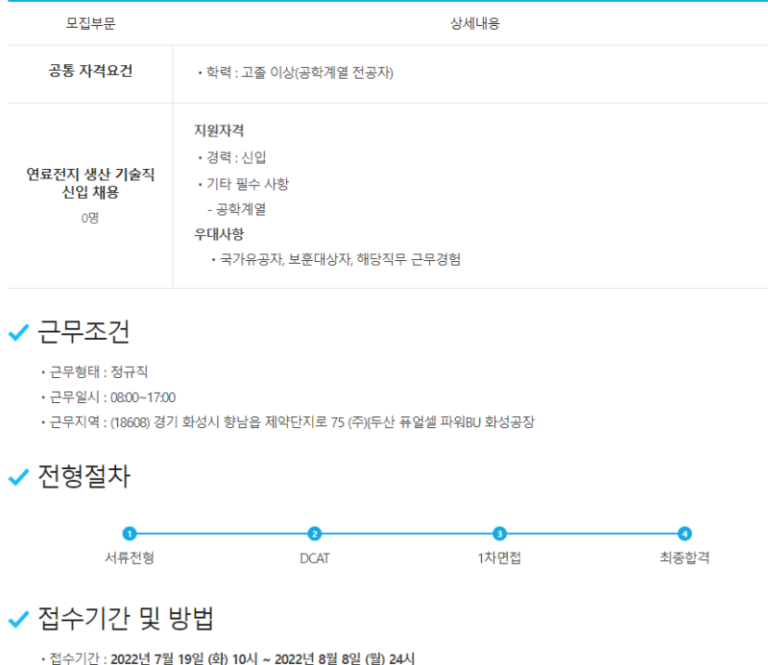 합격률 UP! 화성 두산퓨얼셀파워 생산직 채용 공략 & 연봉 정보 대방출