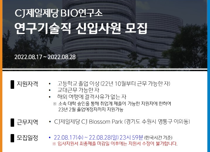 합격률 UP! 수원 CJ제일제당 생산직(테크니션) 채용 공략 & 연봉 정보