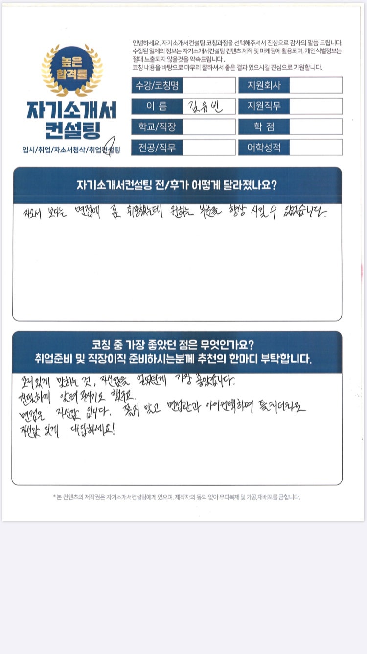 하이트진로 합격으로 이끈 자소서 컨설팅 생생 후기!