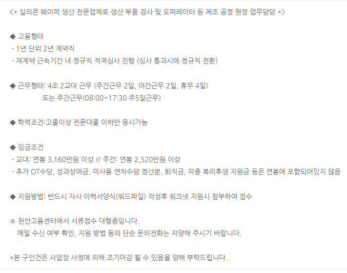 합격률 UP! 천안 MEMC코리아 생산직 채용 성공 비법 & 연봉 정보 대방출