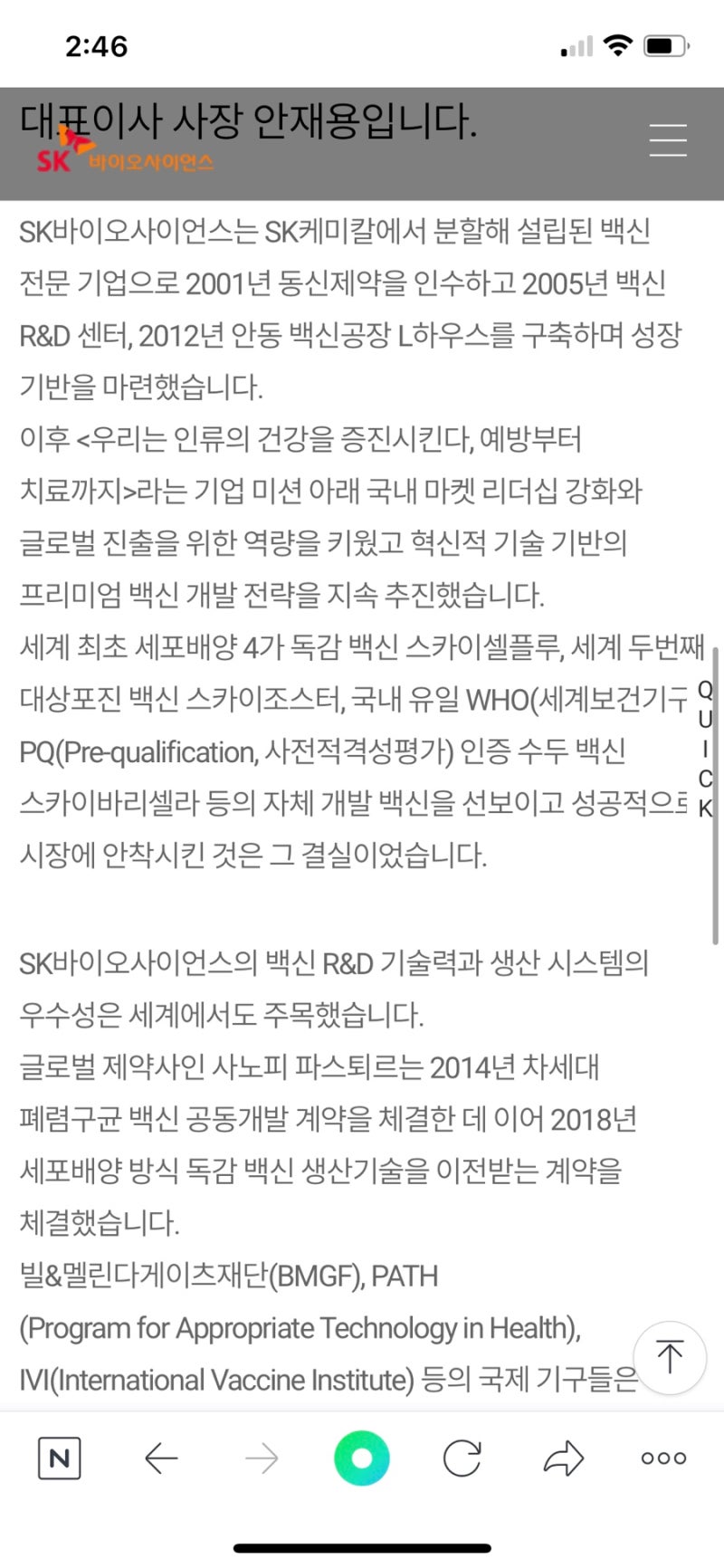 • 비전: 인류 건강에 기여하는 글로벌 백신 리더