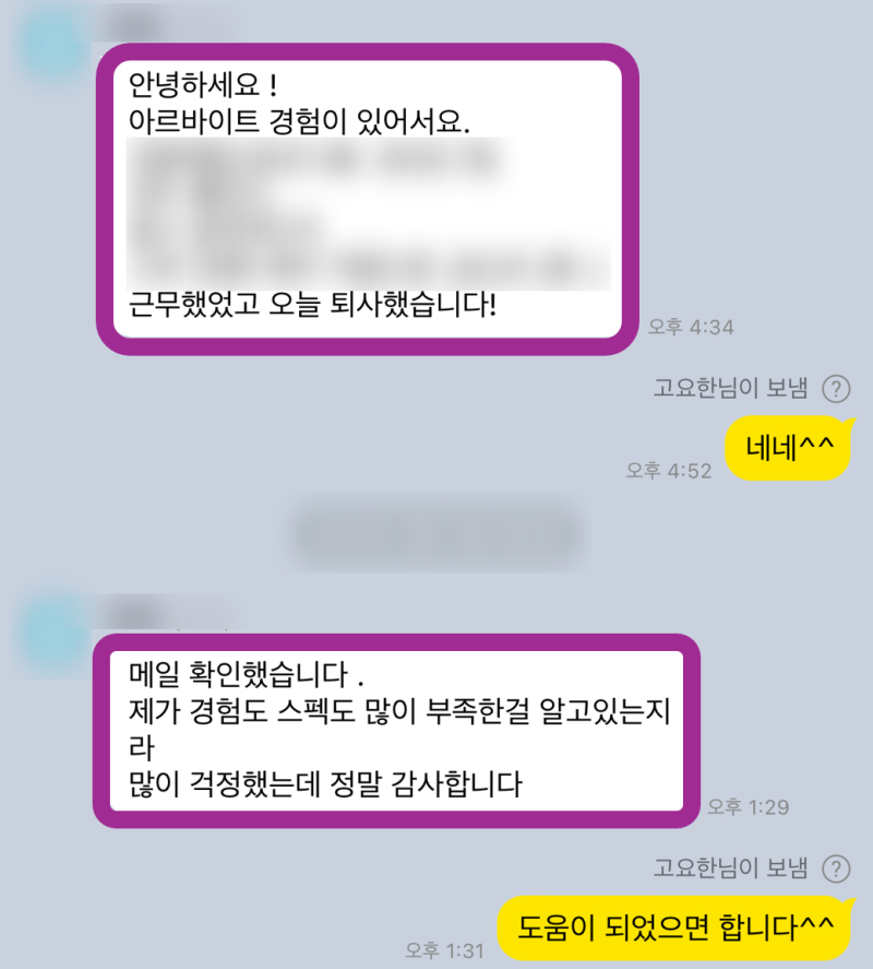 Before: 꼼꼼하고 성실한 성격으로 학창 시절 아르바이트를 통해 책임감을 길렀습니다.